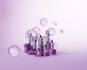 Além de fórmulas veganas e livres de sulfatos, parabenos, petrolatos e silicones, a linha vem com um produto inédito no portfólio da marca: o spray perfumado para cabelos! Um toque final que garante brilho, proteção térmica e aquele cheirinho incrível da uva ao longo do dia, sem pesar nos fios. ✨